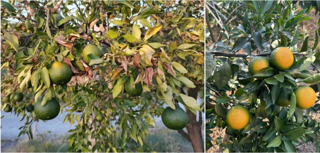 由于高溫干旱,日灼果、裂果等現(xiàn)象會嚴(yán)重影響柑橘產(chǎn)量和品質(zhì),加重果農(nóng)的負(fù)擔(dān)。天然蕓苔素在柑橘果實(shí)膨大、高溫防日灼、預(yù)防裂果中扮演著重要角色。